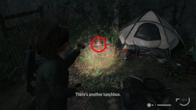 By a campsite to the south, you’ll find the lunchbox to the left of the tent.
