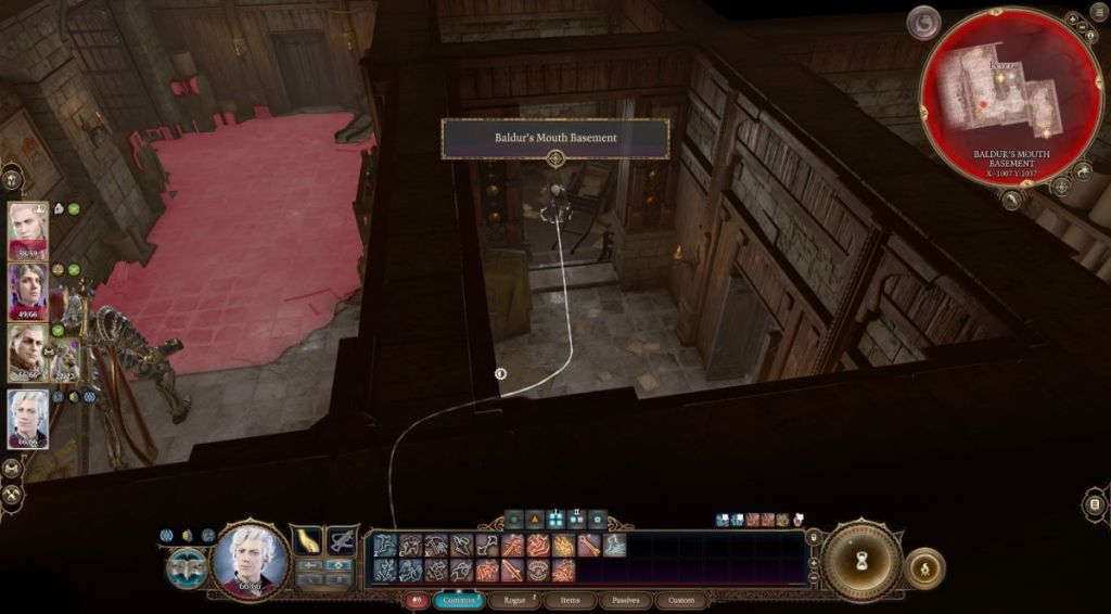 At this point, you’re going to have to do some breaking and entering. I went back to camp and grabbed Astarion because he’s always good for picking a lock, and I’ve had him learn some useful spells through the Arcane Trickster subclass. Along with Astarion’s spells, I had a handful of potions and scrolls of invisibility, so I used that particular spell pretty liberally throughout this quest.