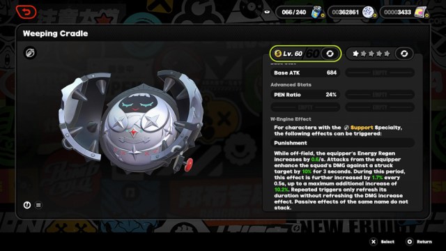 As Cheer On! scales solely on her overall ATK, Weeping Cradle will be my second pick for Lucy. Although its PEN increase will not be game-changing here, the S-Ranker will offer the highest base ATK value among the support-type engines with 684 at level 60. Weeping Cradle will also provide Lucy with a 0.6/s increase in Energy Regen.