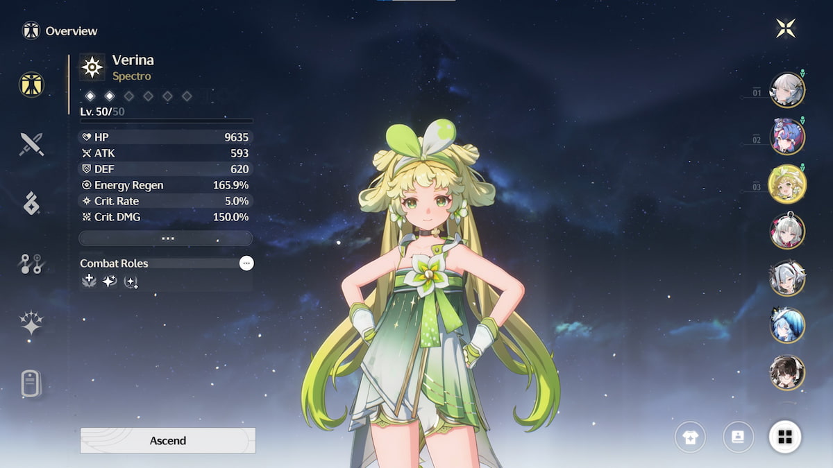 Verina is the second-best support buffer in the game, though in some team comps, she’s the absolute best. While she doesn’t enhance Crit Value like Shorekeeper, she makes up for it with significantly stronger healing and a massive ATK% buff. Her Concerto rotation is also one of the fastest in the entire game, especially at S2, ensuring she can enable Intro-based teammates rapidly and keep the team in top form. She also offers low-damage Coordinated Attacks, which can be a game-changer for certain compositions. Best of all? She’s free to obtain through the Character Selector all players are given at the start of the game, making her an easy recommendation for any player.