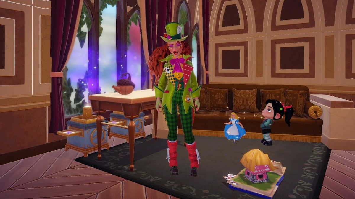 Head to the Dreamlight Library to meet up with Vanellope and Alice. This location is Merlin’s home, so travel to wherever you have it placed around your village to initiate the hangout session. Once you’re inside, approach Alice and Vanellope at the table to chat with them. Vanellope ends up messing with one of Merlin’s unfinished books, causing magical words to spill out all over the village.