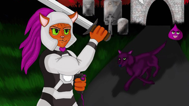 Here is another team, Gradual Games, with a fresh NES homebrew straight from the coffee pot. It’s called Nomolos: Storming the Catsle (that isn’t a typo), and it’s a blend of Castlevania, Super Mario Bros., Ghosts’n Goblins, and quite possibly a bit of Cheetahmen. From the trailer, gameplay consists of dashin from left to right through waves of enemies while swinging a short sword. It looks easy, but hands-on previews insist that it is hard as balls.