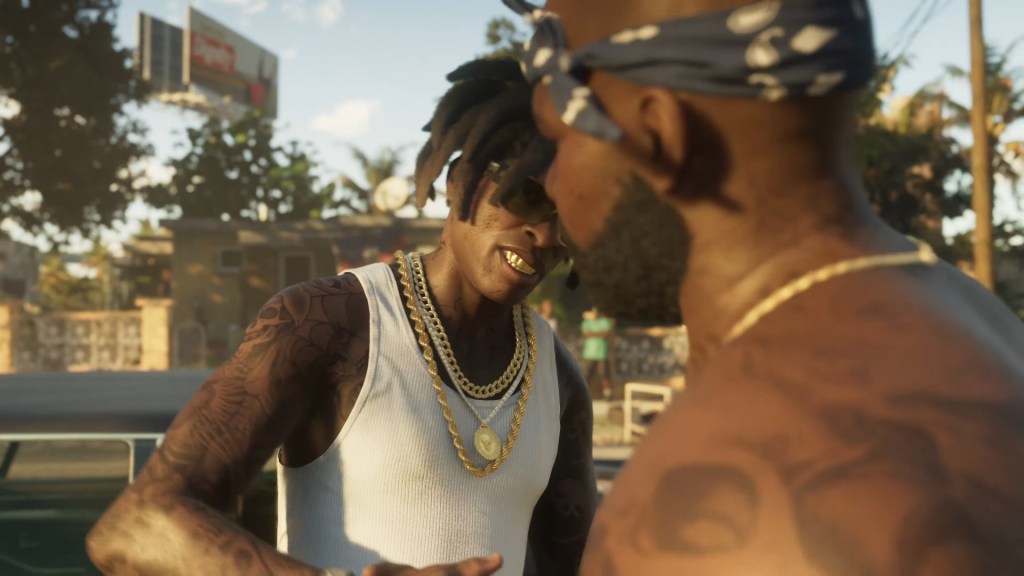 It’s been long rumored that the highly anticipated sixth entry in the Grand Theft Auto series would bring a return to Vice City, and that looks to be the case. The trailer’s title card features the classic Vice City pink and orange washed-out colors. Also, about halfway through the trailer, we see a Vice sign in the style of the Hollywood sign, which almost certainly confirms it.