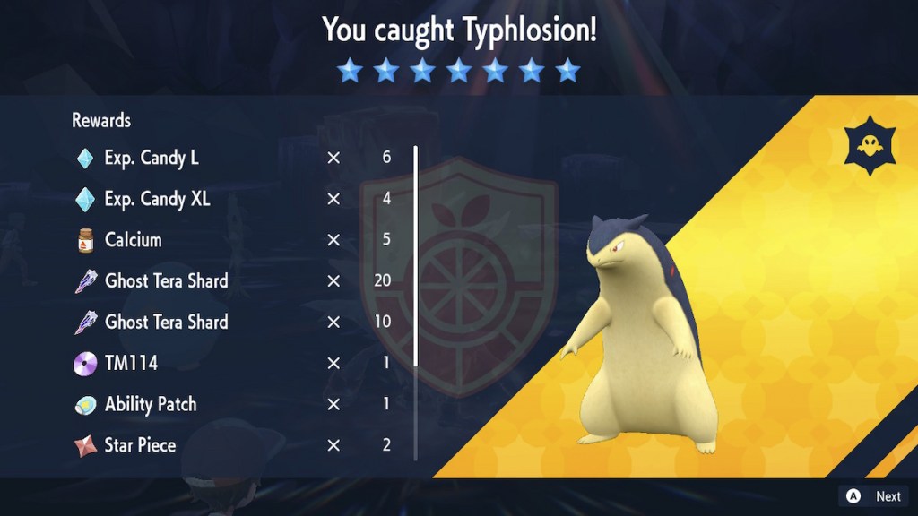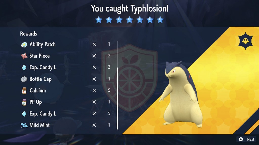 Also like past 7-Star encounters, Typhlosion will have the Mightiest Mark. This grants it the title of Typhlosion the Unrivaled.