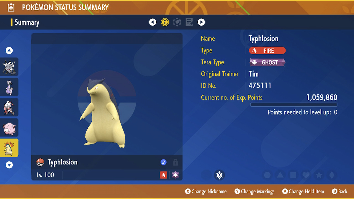 Typhlosion sports the Ghost Tera Type, making it similar to Hisuian Typhlosion from Pokemon Legends: Arceus. Like past events, it is level 100 and has its hidden ability Flash Fire. Here are its moves: