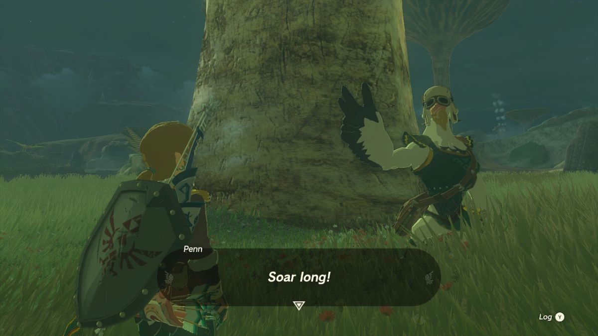 As you approach, you’ll see Penn standing in an empty pen. Head over and chat with him, and he’ll fill you in. Apparently, the caretaker of some white goats had been using a special feed recipe he’d been given by Princess Zelda. But his goats ran away, and now he needs help finding them.