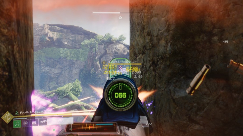 I recommend using long-range weapons like a scout rifle, sniper rifle, or pulse rifle for this next bit. After equipping your preferred ranged weapon, rally to the banner to begin the encounter. Across the canyon will be an ever-increasing swarm of shanks. Eliminate them to bait out the Mega-shank, Hoarder of Tainted Light. The boss will become temporarily immune after losing each third of its life. Just keep its minions thinned out and you shouldn’t have too much of an issue with this big boy.