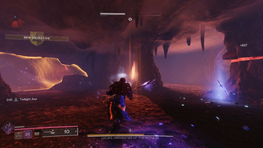 Follow the marker to a cave filled with screebs. Proceed slowly and pay attention to your radar to avoid being flanked. At the end of the tunnel will be a cavern with the stolen barrel and boss, Lii’liks, Harvester of the Witness.
