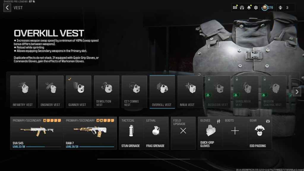 The former allows you to hold two primary weapons at the same time, lets you start each match with max ammo, and improves reload speed. So there’s a few other reasons to equip the Gunner Vest other than just getting a good secondary.