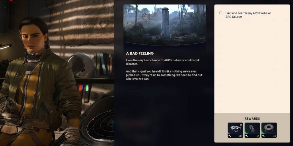 One of the earlier quests in the game called A Bad Feeling is tied to the story and given by Celeste, who trades you gear for seeds she can use to plant crops. As part of this quest, it’s time to seek out specific ARC and loot them to keep the story going.
