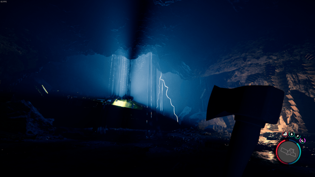 I’d also recommend equipping your Rebreather by default, as you might suddenly find yourself dropping into deep water, and you won’t be able to equip it once you’re already swimming. If you find yourself in deep water, as you often will in this cave, swim down and find tunnels that will allow you to continue your journey. When you come to holes in the ground, check for ropes and use them to avoid fall damage.