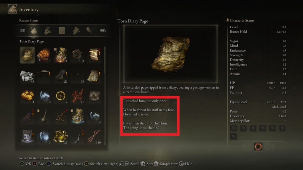 A clue waits in the zone’s dungeon, located at the southwest corner of the map. It reads as follows: “I touched him, but only once. When he thrust his staff in my face, I brushed it aside. It was then that I touched him. The aging untouchable.”