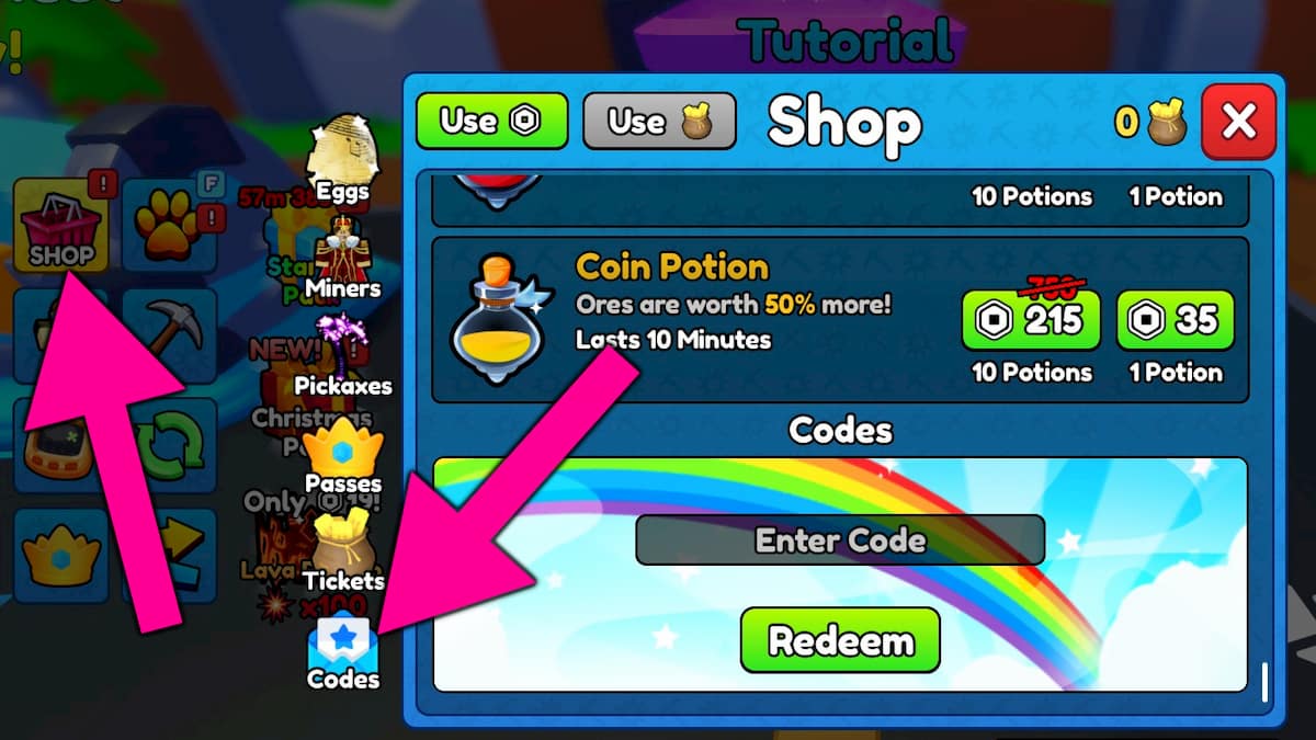 How to redeem codes in Pickaxe Simulator