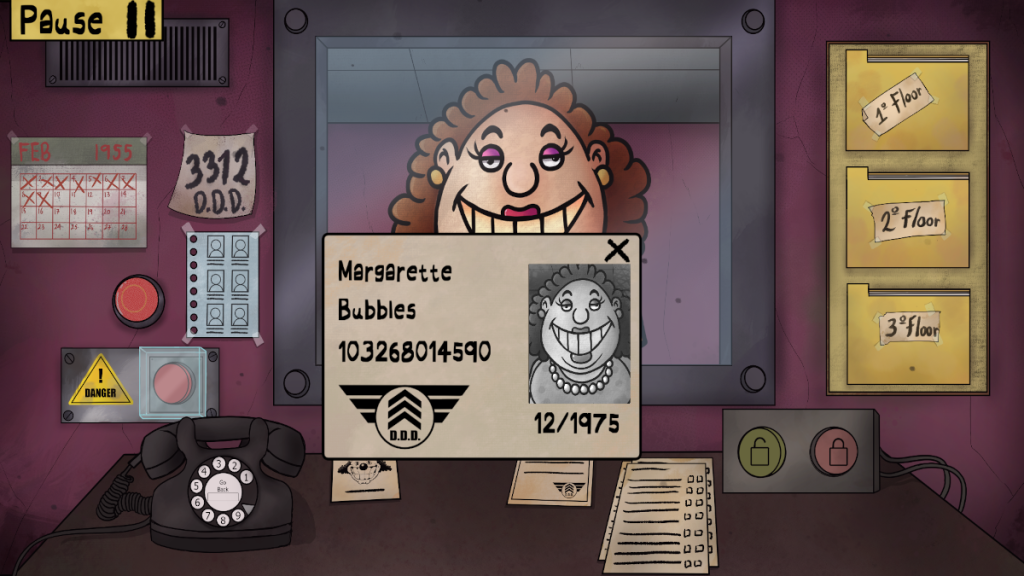That’s Not My Neighbor is set in February 1955, and you’ve just been hired as a doorman in an apartment block that’s been plagued with recent disasters involving Doppelgangers. It’s your job to appraise residents as they enter the building, trying to discern whether they’re the real deal or a doppelganger.