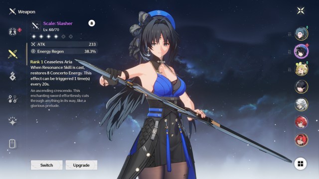 Even if lacking the Crit Rate increase of Emerald of Genesis, the weapon will offer a massive amount of ER and allow her to gain an extra amount of Concerto Energy per 20-second intervals. As Yangyang needs to use Zephyr Song to quickly stack Melodies, Lumingloss will be my second pick given its Heavy Attack buff. To recap, you can check out an overview of the best weapons for Yingyang below, as well as a few extra recommendations as an extra: