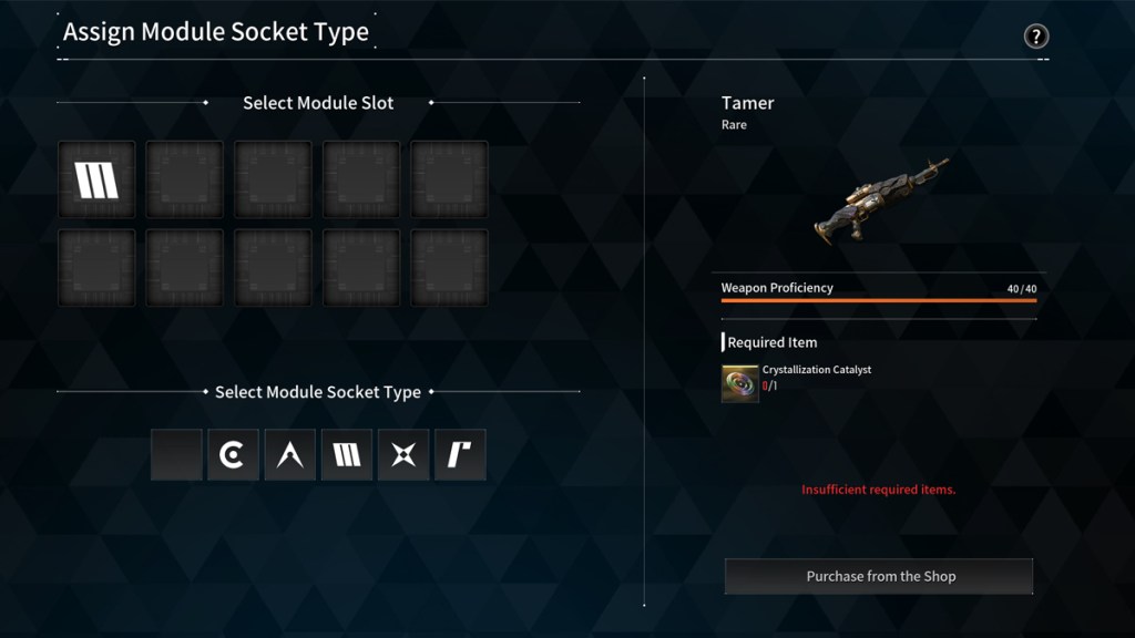 Aside from having a level 40 weapon, the process requires a Crystallization Catalyst. This item can be crafted after farming its various components [(8) Murky Energy Residue, (22) Macromolecule Biogel, (8) Mixed Energy Residue, (18) Advanced Neural Circuit, (1) Crystallization Catalyst Blueprint]. Those who don’t want to farm have the option of purchasing the catalyst for 260 Caliber.
