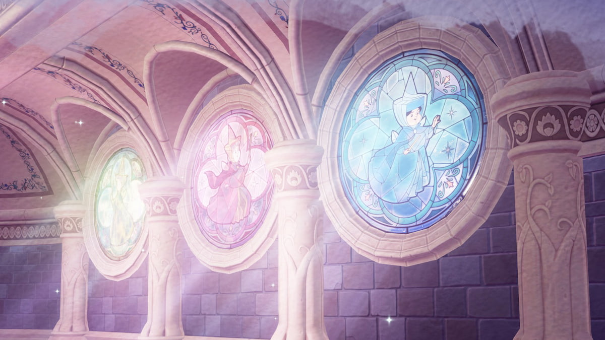 While you’ll have time to explore the area, your goal is to reach the back of the room, enter the door, and meet the three good fairies of Aurora’s story. Flora, Fauna, and Merryweather will tell you about your current situation, including your next objective: collecting three enchanted gifts. Collecting these three gifts requires completing various trials led by the good fairies.