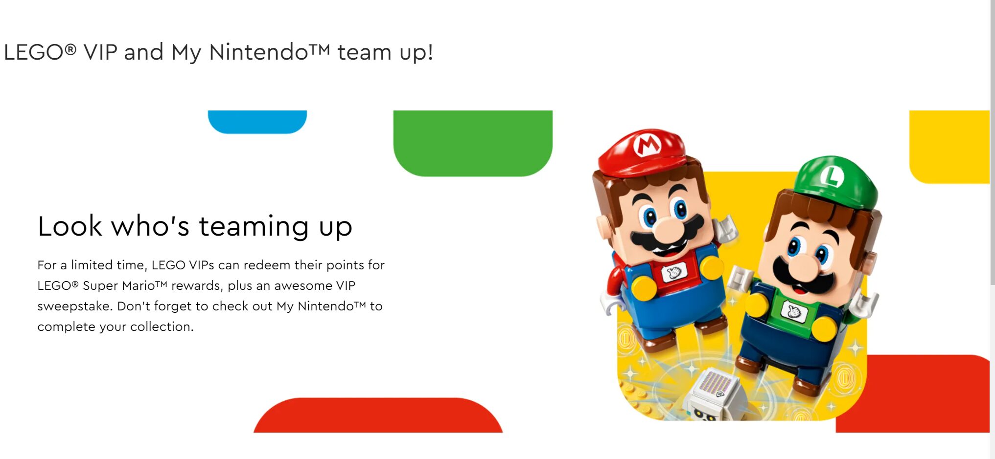 I’ll save you the guesswork! So once you sign up you’ll be greeted with a LEGO VIP and Nintendo landing page (that looks like this). There you can grab Luigi, and earn 200 My Nintendo Platinum for being a part of the LEGO VIP program. Once you get a code for the former, you need to redeem it here on the My Nintendo site, under the “earn points/missions” page. Luigi is 500 VIP Points.