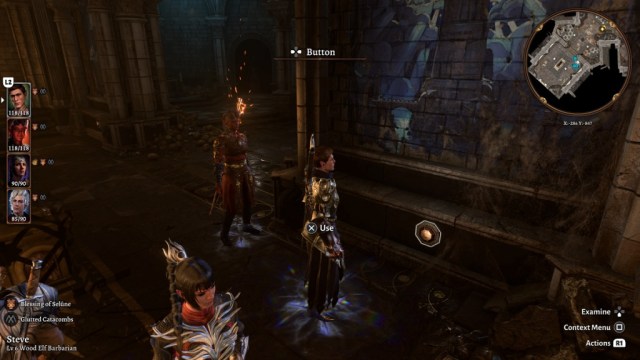 Once you’ve made it into Thorm Mausoleum, you’ll be faced with a particularly easy challenge, so long as you know what you’re doing. In the northernmost room will be an empty coffin surrounded by traps of all types, and three elegant paintings with buttons underneath them, in the shape of a triangle (two on either side of the entrance and one in front of you).