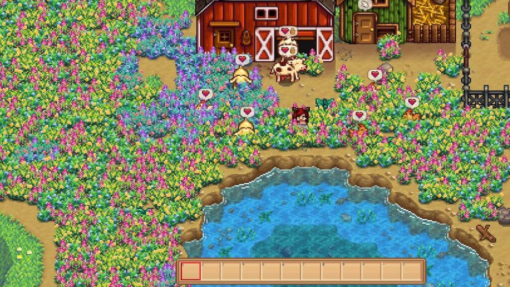 The pixel style of graphics, especially for Stardew Valley, reach the inner child in me that needed this game in my past. The bright colors, the palette in general make the world blend in together in an aesthetically cute pixel art, and cute things always make me happy and hopeful. The bright palette adds tones of extra cheerfulness of the game, which helps brighten my moods.